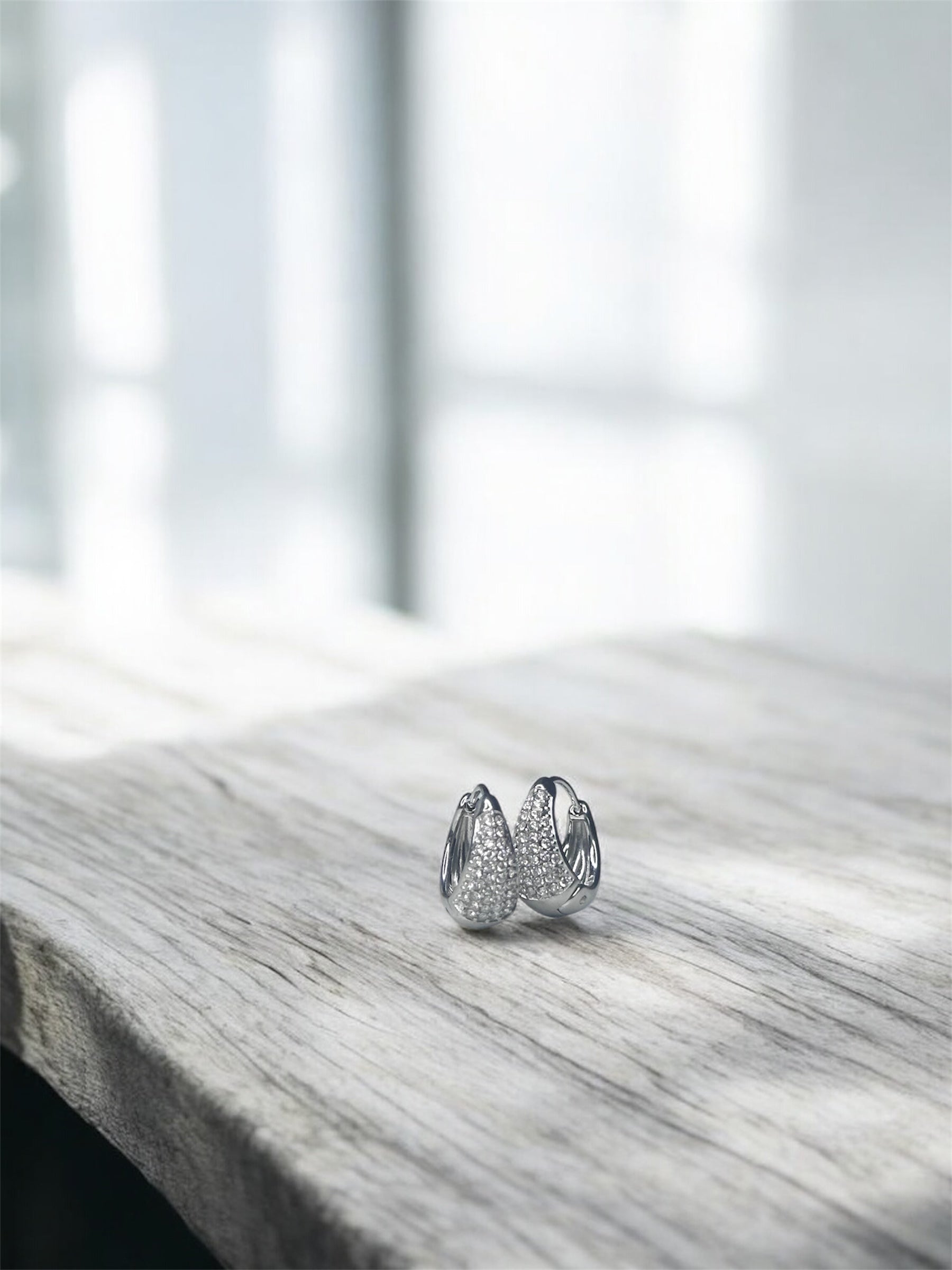 Gli orecchini Gleam Hoops uniscono l’eleganza intramontabile del design a goccia con la brillantezza dei cristalli pavé, creando un effetto luce che valorizza ogni volto.